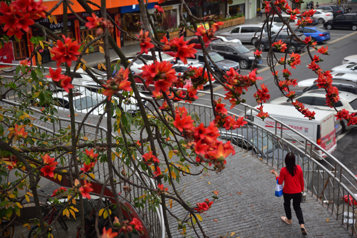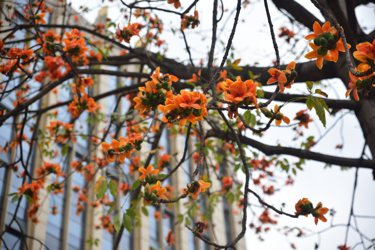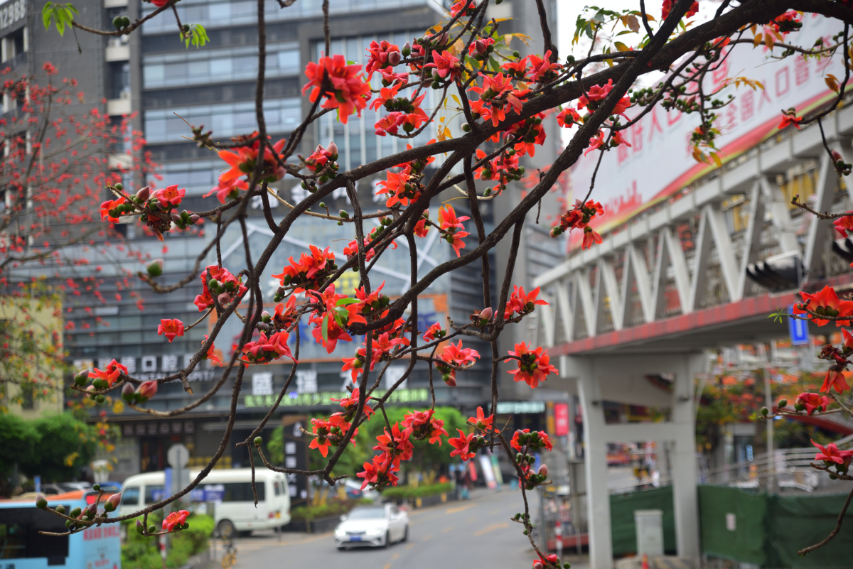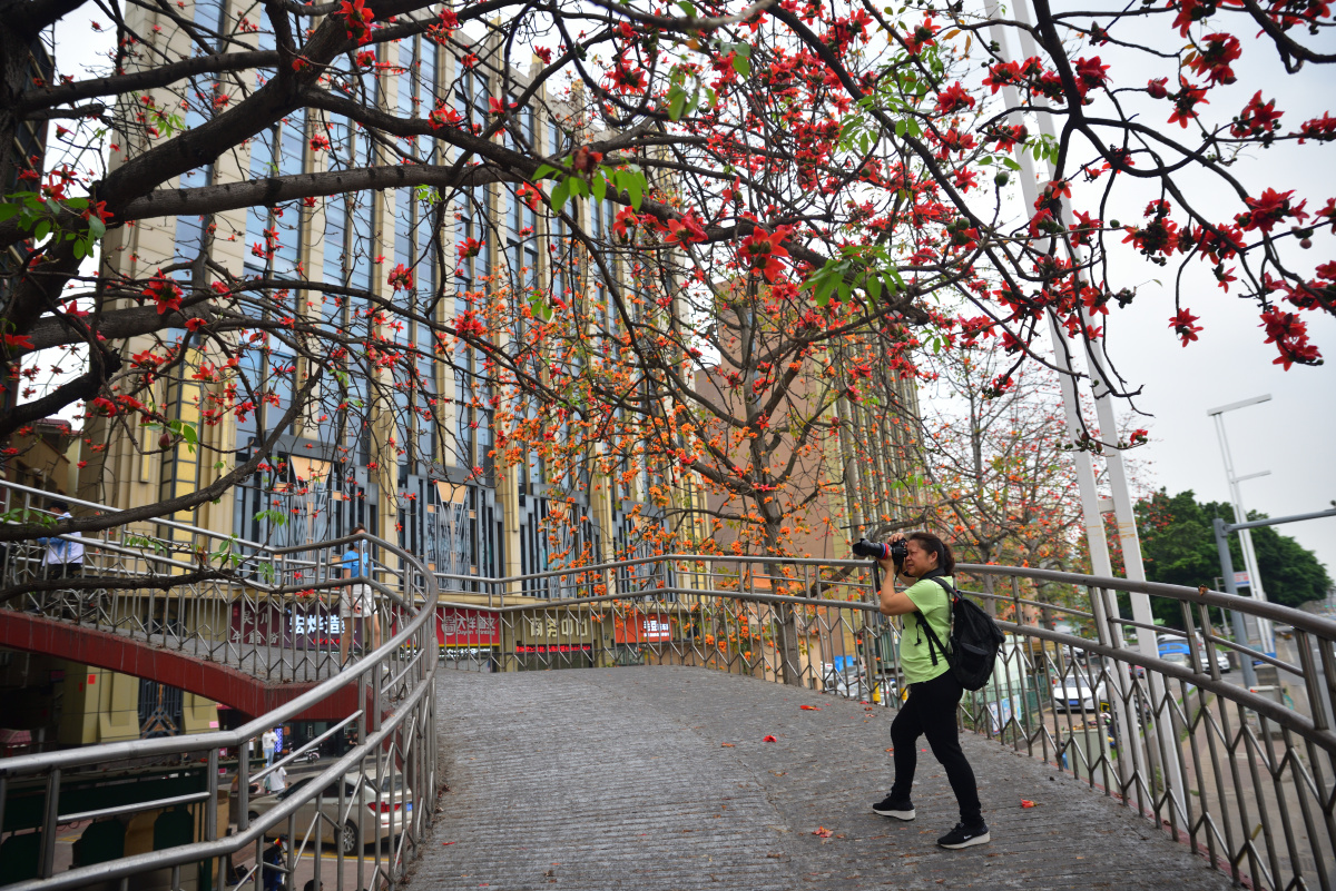 三月的广州,木棉盛开。橙红两色,尽收眼底。