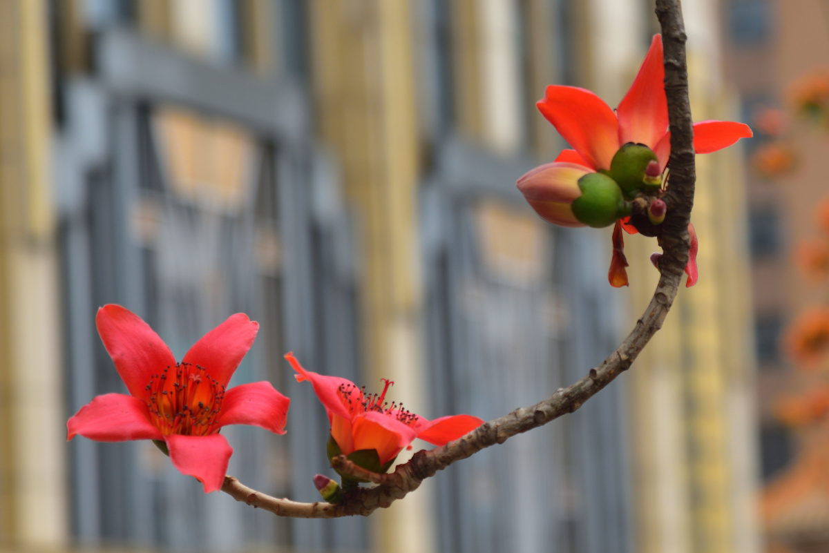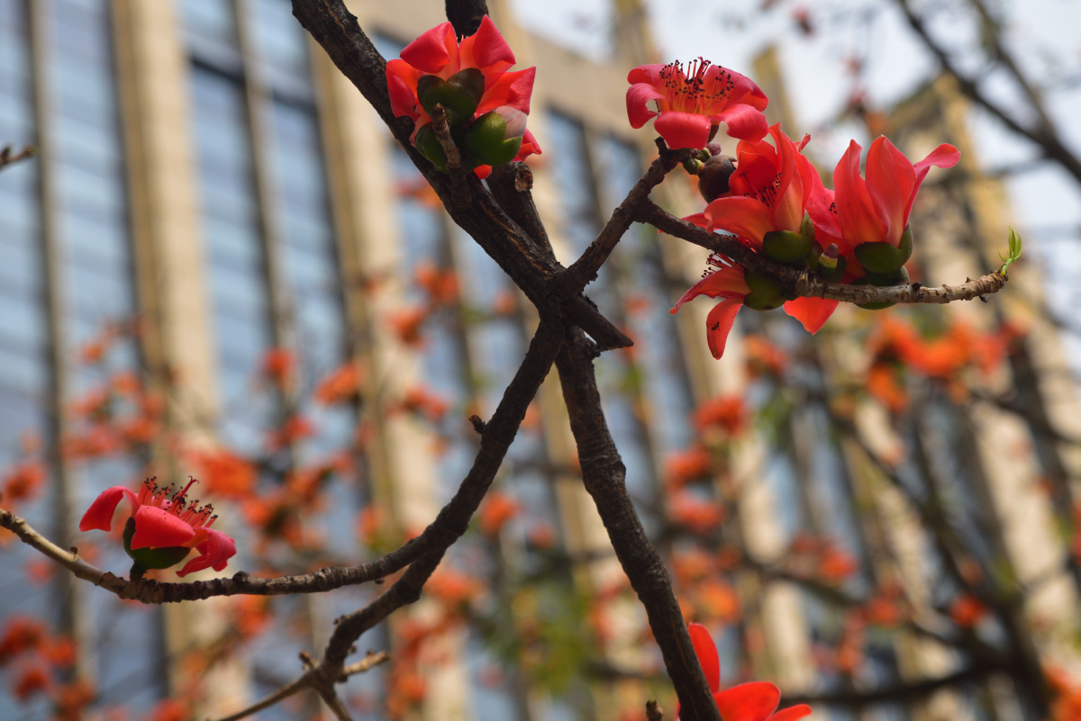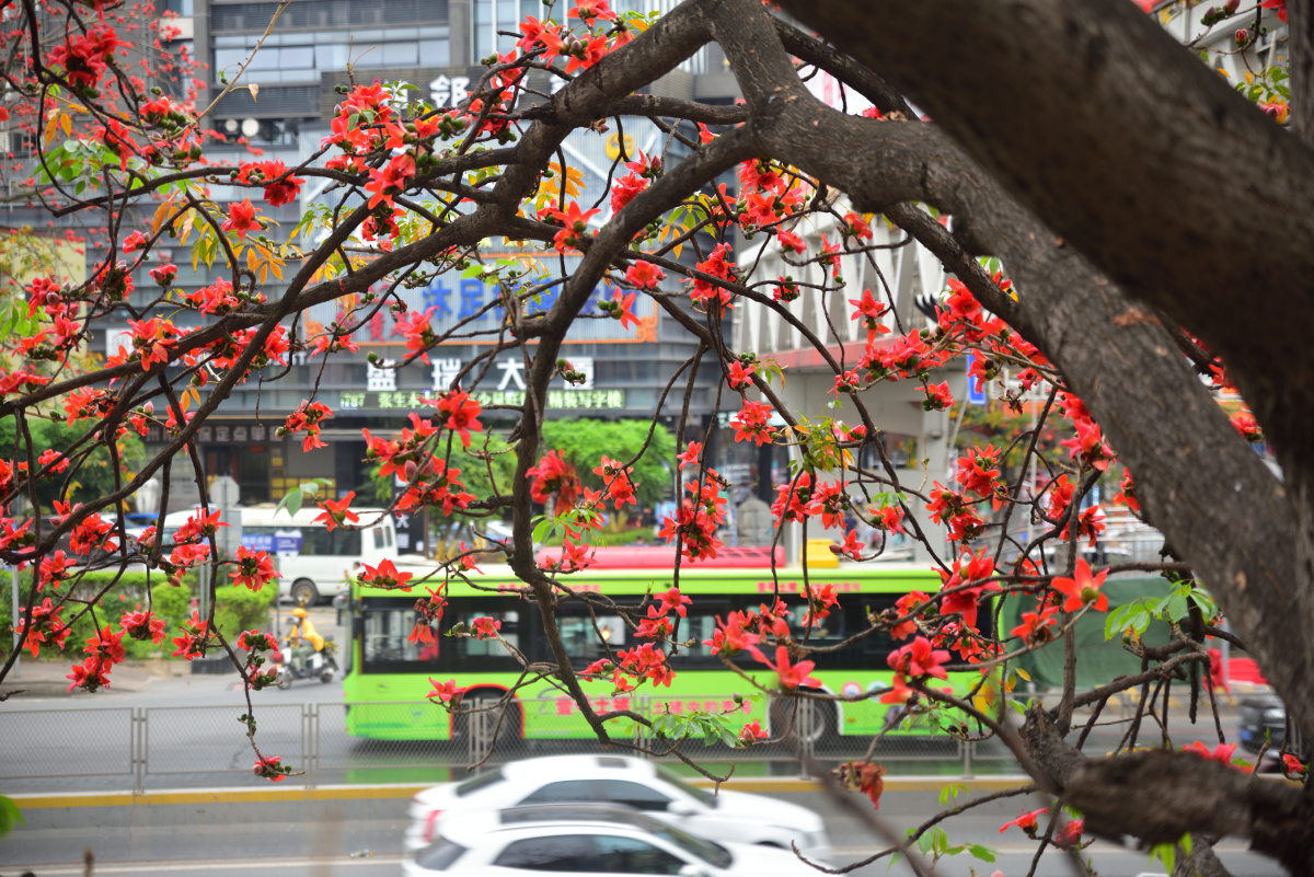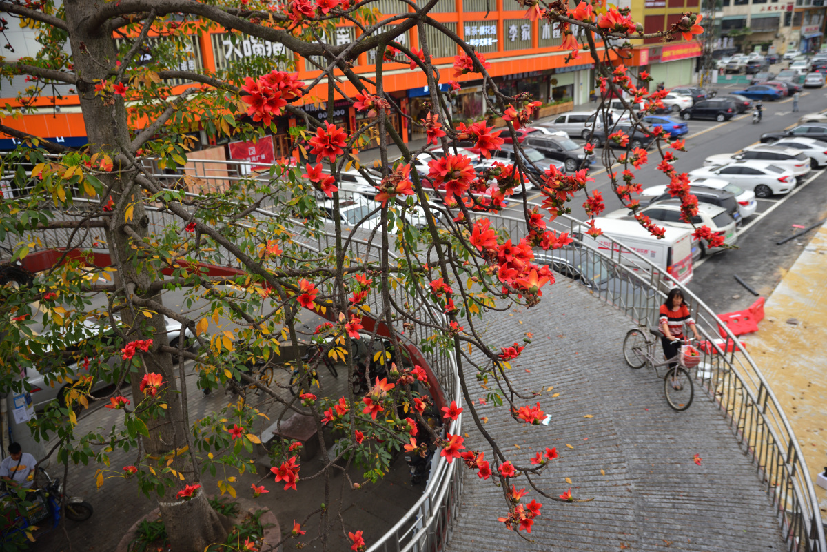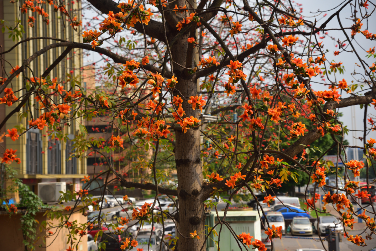 三月的广州,木棉盛开。橙红两色,尽收眼底。